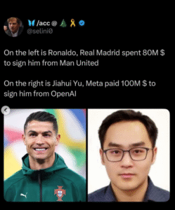 3. Cristiano Ronaldo makes €80M/Year. Meta Paid Jiahui Yu $100M to Leave OpenAI. Let That Sink In.